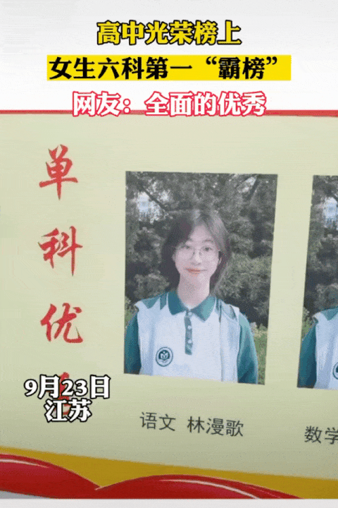 比如江苏徐州,某重点高中的光荣榜上,六门学科的第一,都是同一个女生。