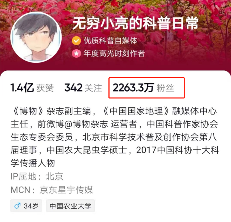 比如,作为科普博主、《博物》杂志副主编的无穷小亮,这段时间也被网暴了。