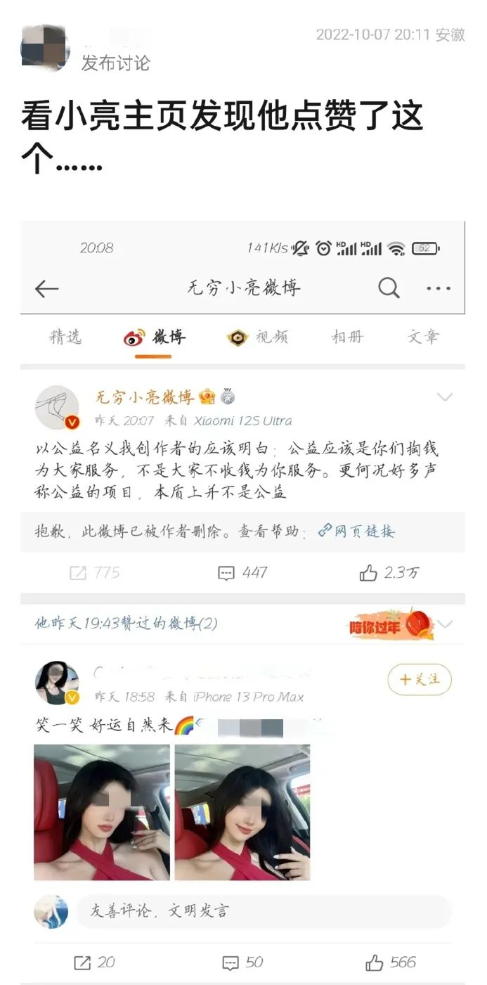 网友们纷纷取关、拉黑无穷小亮,觉得他十恶不赦,自己看走眼了才会关注他。