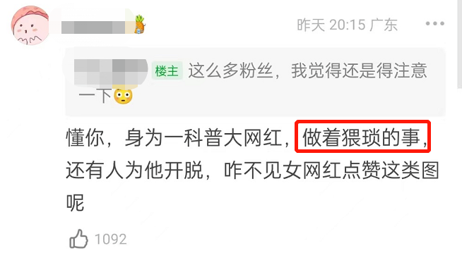 粉丝大呼“塌房”,觉得他身为一位科普网红,怎么能做如此“猥琐”的事?