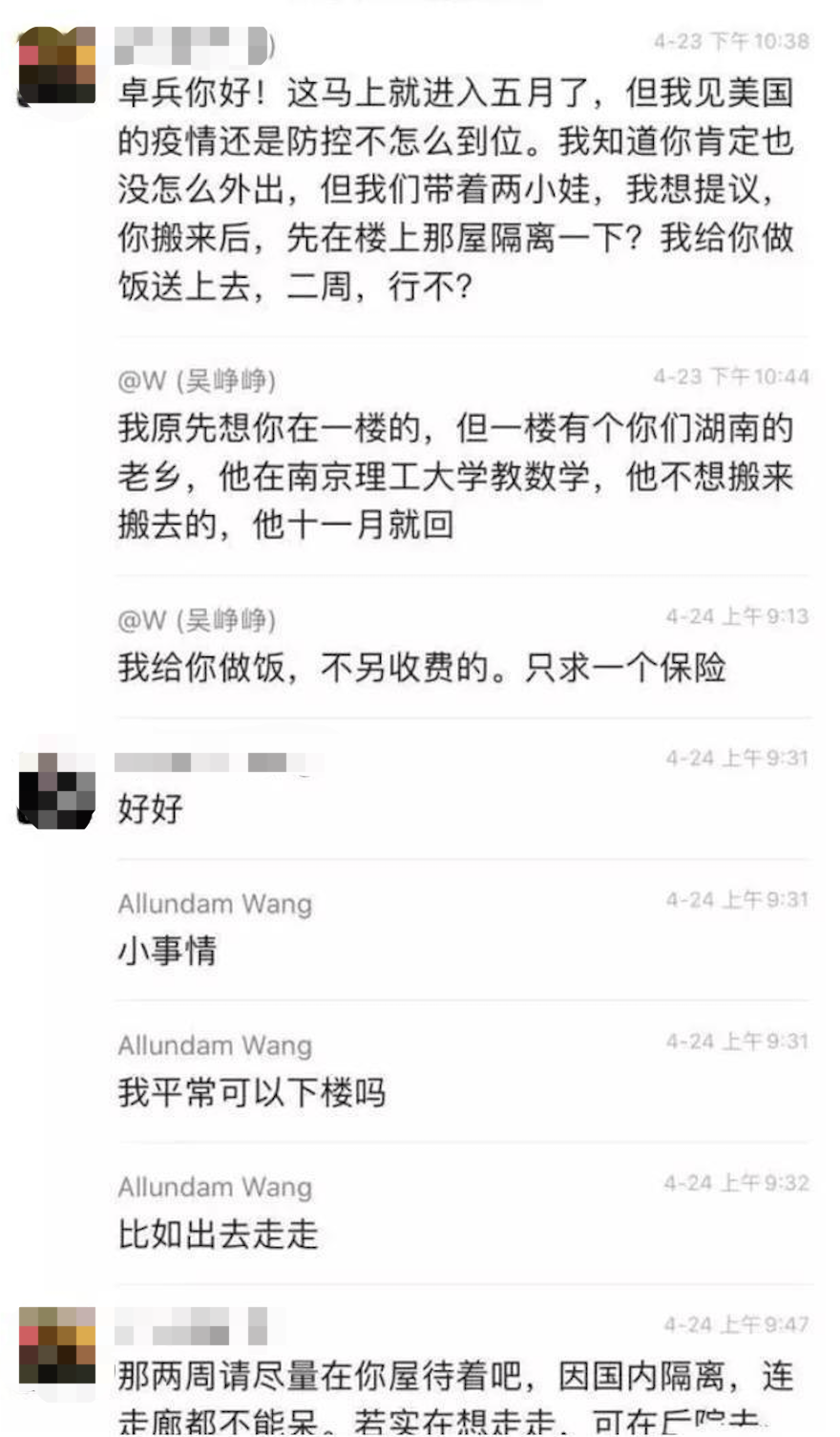 双方约定好租一年,可王卓斌人还没到,就因为疫情被女主人通知要求居家隔离。