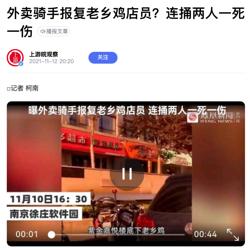上游皖观察:《外卖骑手报复老乡鸡店员?连捅两人一死一伤》