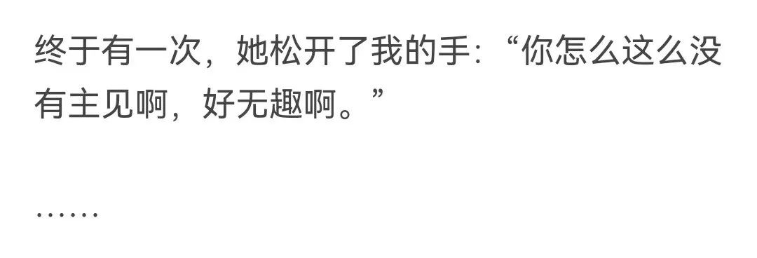 终于有一天,女朋友受不了了,和他提了分手:“你怎么这么没主见啊,好无趣啊。”