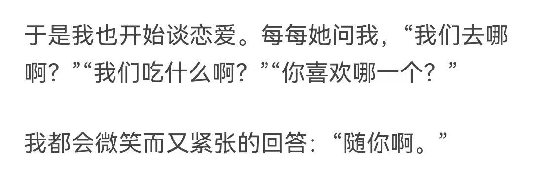 再后来,谈了恋爱,每每被女友问道:“我们去哪玩啊?”“我们吃什么啊?”“你喜欢哪一个?”