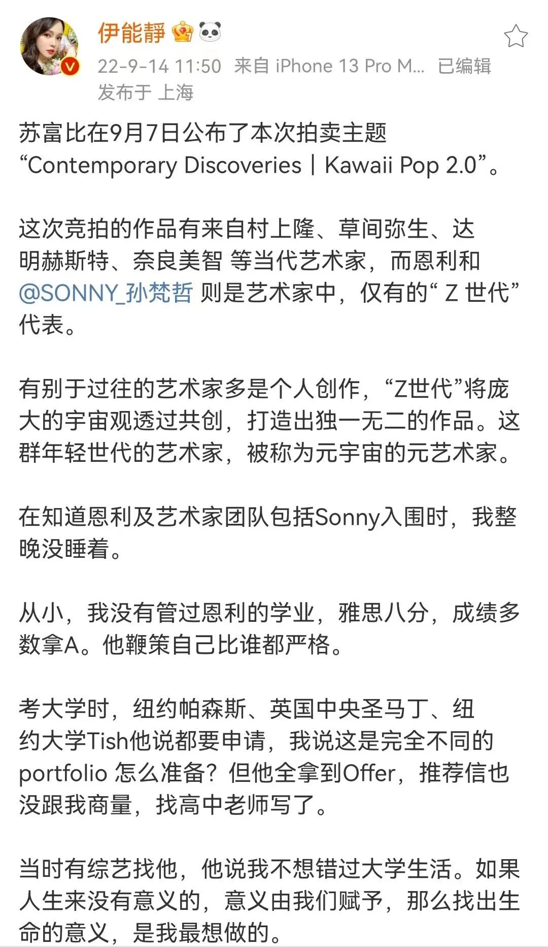 也正是伊能静的开明的态度,让儿子可以在艺术熏陶和坚持个性的路上大胆做自己,最终拿到了中央圣马丁艺术学院和帕森斯设计学院的offer(这两所院校堪称“艺术界的剑桥和哈佛”,培养了许多世界顶尖的设计师,比如时尚教父亚历山大·麦昆、LV设计师马克·雅可布等)。