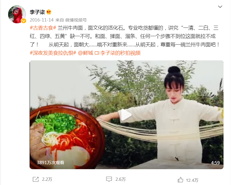 为了拍令她大火的《兰州牛肉面》视频,她托朋友介绍,找到一位甘肃拉面师傅,软磨硬泡了很久才得以向其学习。
