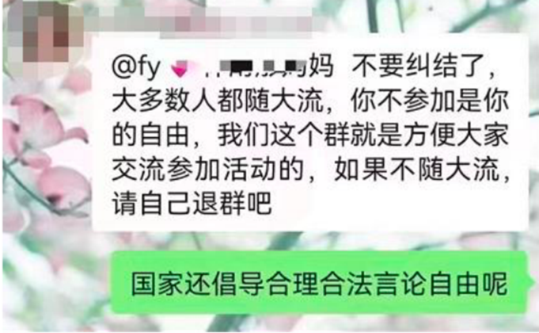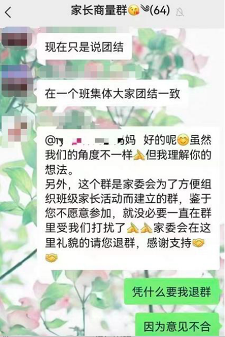 明明叫“商量”群,结果一位家长就因回了句:“我不参与”,就被群里的成员围攻,被逼退群:
