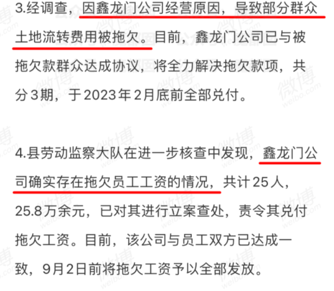 公告中明明白白写着:这家公司欠着农民们的土地流转费以及多达25万的工资。