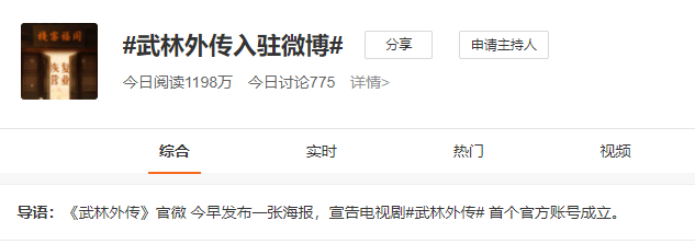 近日,《武林外传》宣布入驻微博,此消息一出,直接冲到了热搜第二,阅读量更是直冲3亿。