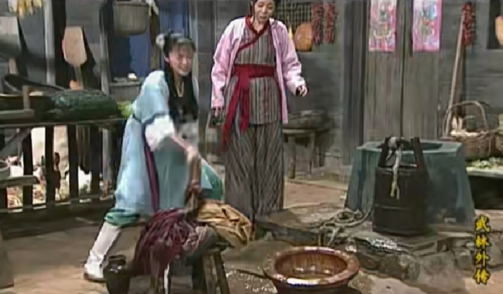 最后,还是掌柜的实在看不下去,走过来手把手教小郭,先从小件起、放点皂角粉、再搓搓领口......