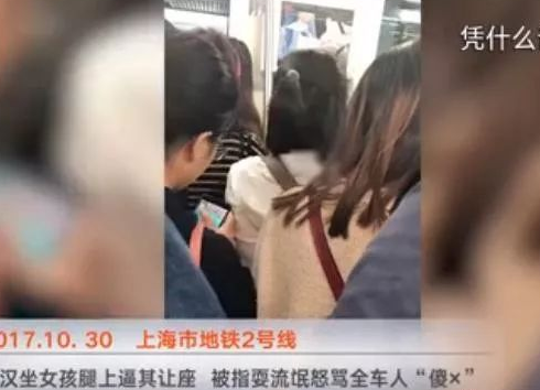 在上海的地铁上,有个老头要求一个女孩让座。