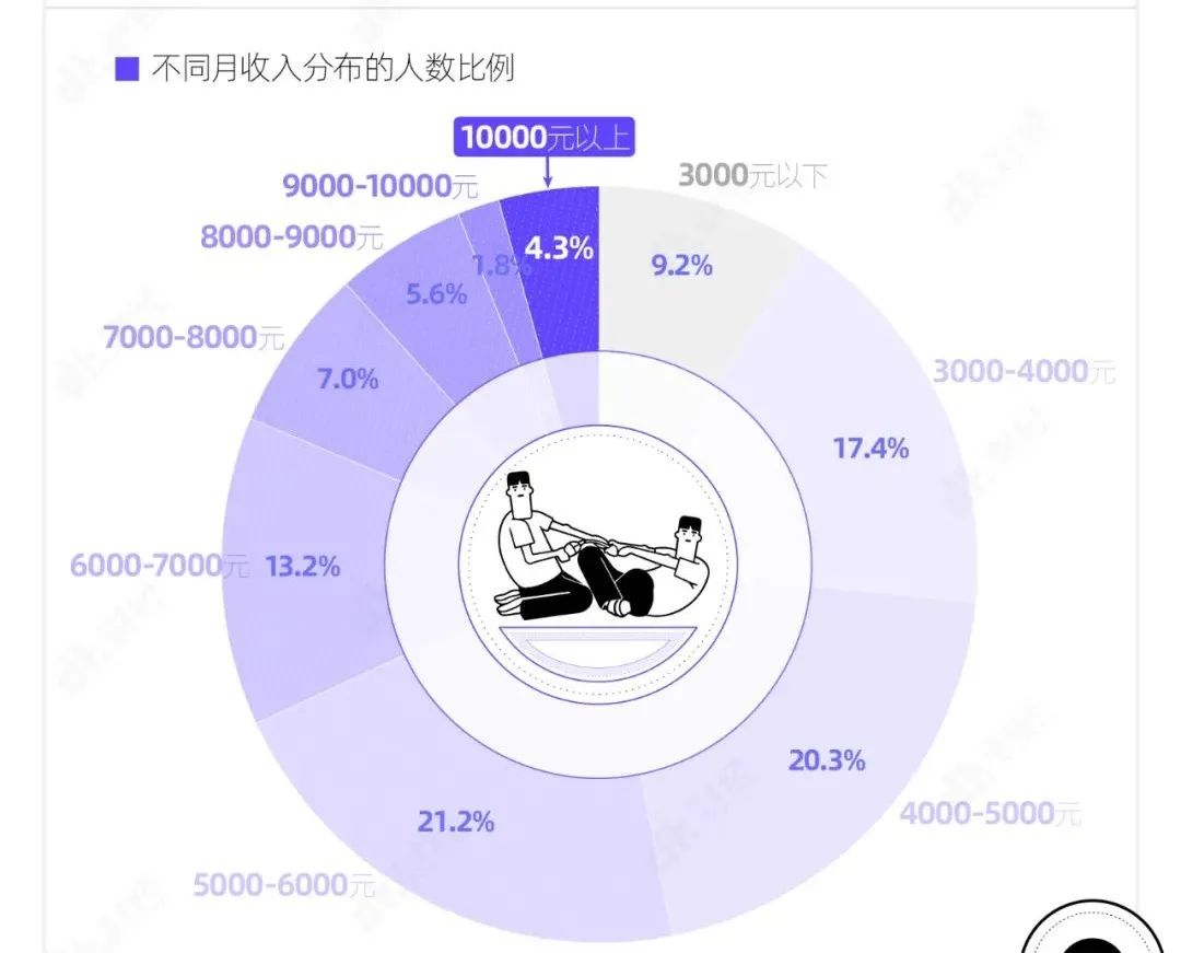 麦可思《中国2020届大学毕业生培养质量跟踪评价》的数据显示,月收入(税前,包含工资、奖金、津贴等在内)在1万元以上的本科应届毕业生仅占该群体总人数的4.3%,与此同时,有68.1%本科毕业生月收入在6000元以下。