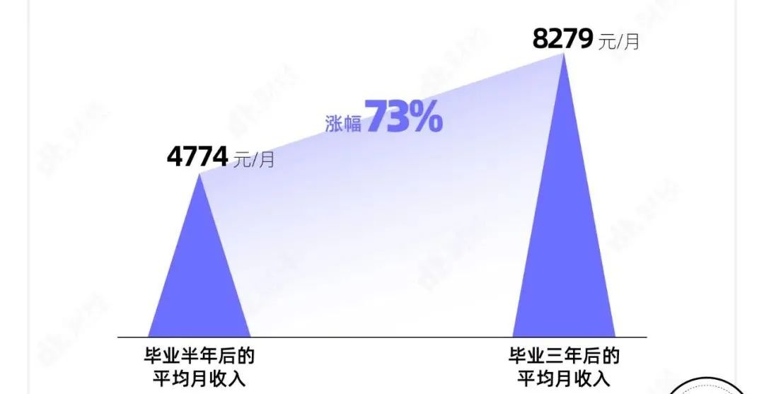 即便是在工作三年后,也有相当大一部分本科生的月收入没有达到1万元。数据显示,毕业三年后,本科生的平均月收入为8279元。