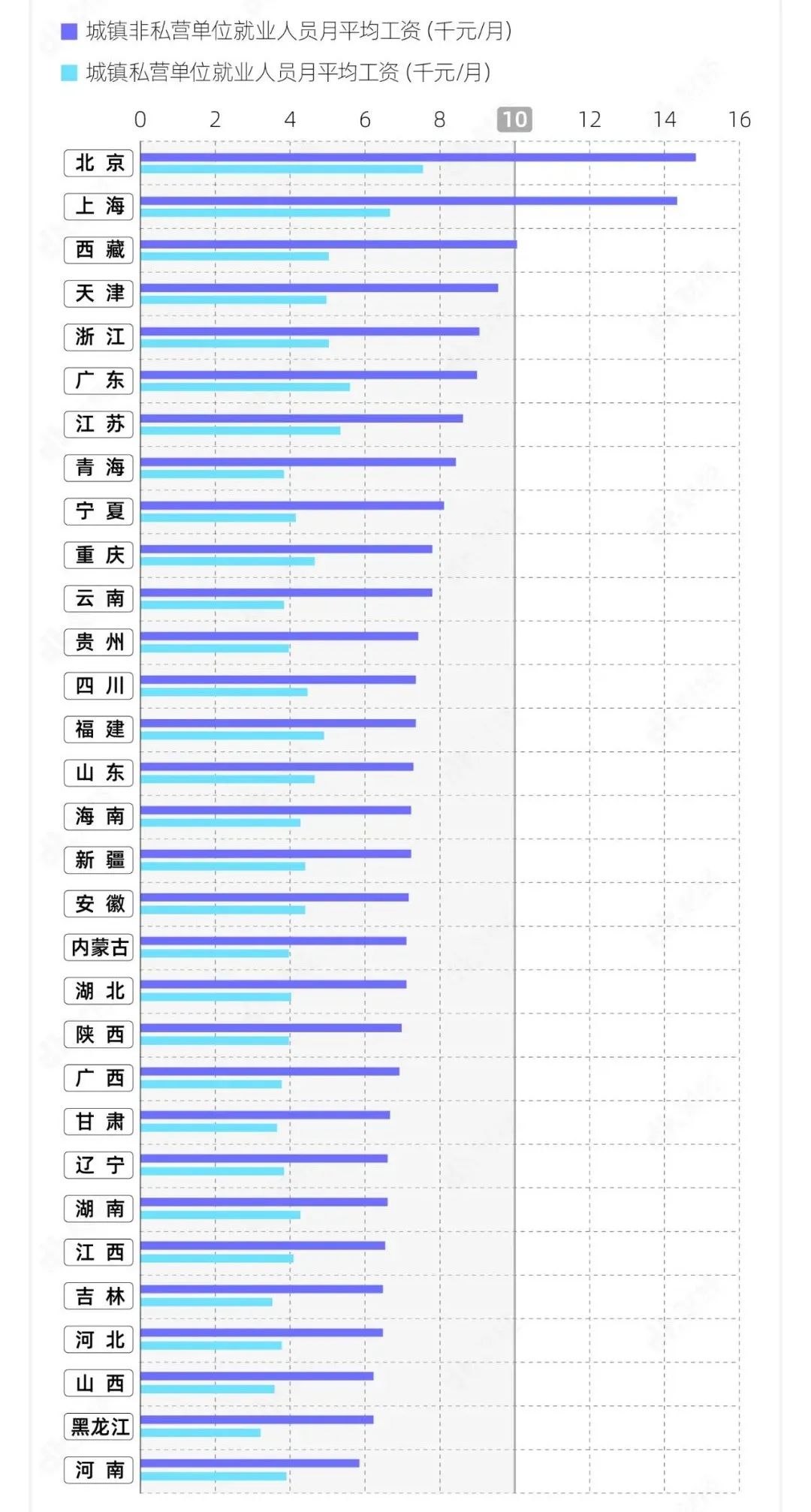 一方面,因为数据是基于不同省份划分的,而广东省除了广州之外还会计入其余所有城市的人均工资,所以排名可能低于预期。