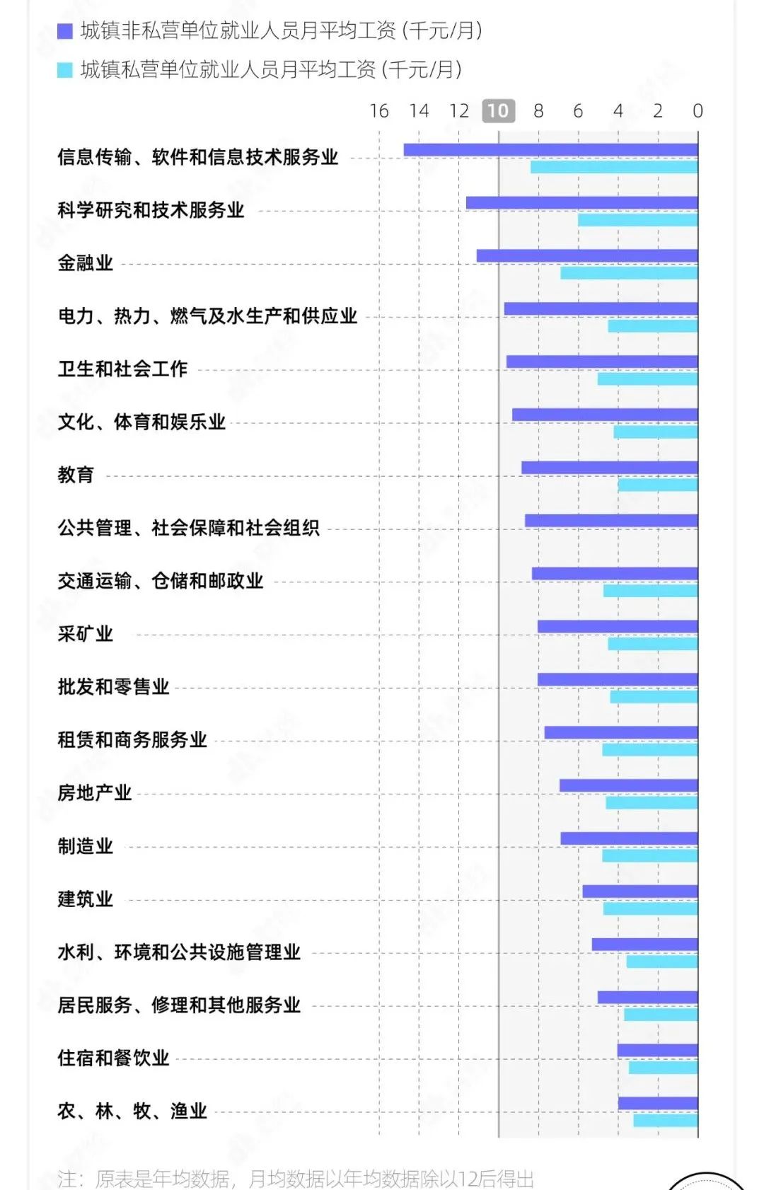 以上是比较宏观的统计数据,你可能会认为,统计样本中包含了家庭中的无收入人群,比如无退休金的老人、失业者、正在读书的孩子等,因而数据偏低,只看打工人的话,遍地是高薪。