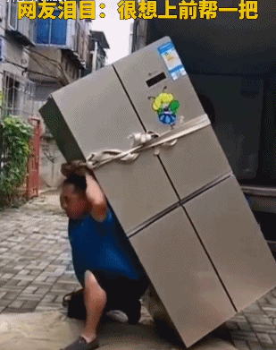 上百斤的冰箱压在身上,他打了好几个趔趄,险些被冰箱压倒在地。