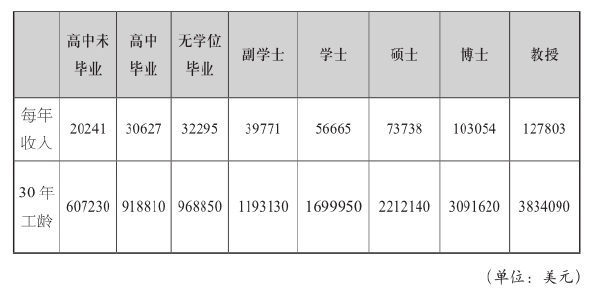 可以说,教育这个选择几乎为我们整个「职业生涯」和「退休储蓄」奠定了基础的收入潜力。可以看看这张表。