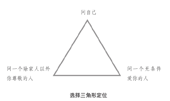 这三个人,包括你自己,无条件爱你的人,和你尊重的人,由此可以形成一个选择三角形定位。