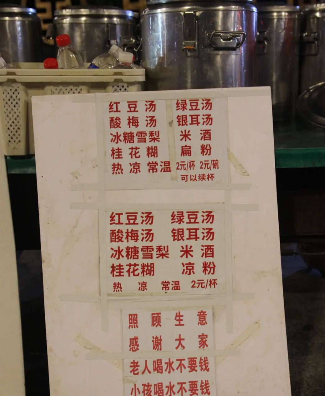 绿豆汤、酸梅汤、银耳汤、冰糖雪梨、桂花糊......各种夏季冰凉饮品应有尽有。
