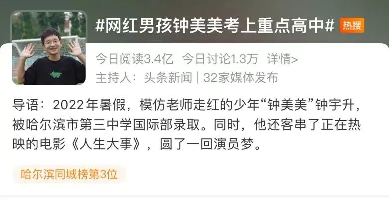 这两天,#网红男孩钟美美考上重点高中#的热搜,让我感触颇深。