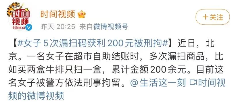 近日,微博上#女子5次漏扫码获利200元被刑拘#的新闻震惊人心。