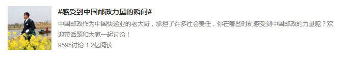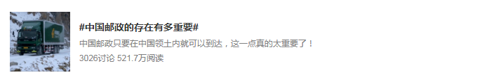 #中国邮政的存在有多重要#、#感受到中国邮政力量的瞬间#、#邮政是不是哪都能送#等话题,讨论度都极高。