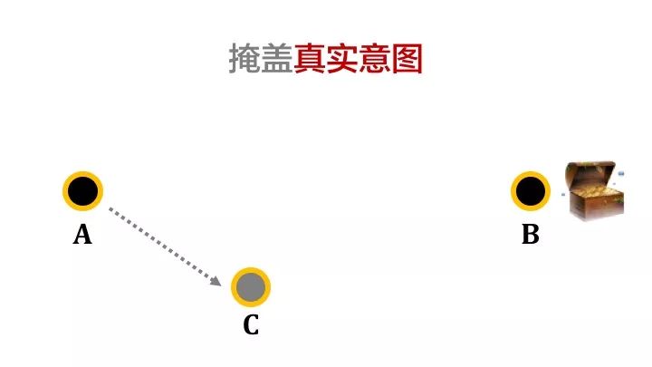 但我并不想让其他人知道我要去B点挖宝藏,那么在拟定行进路线的时候,我可能会绕个弯,比如先去C点: