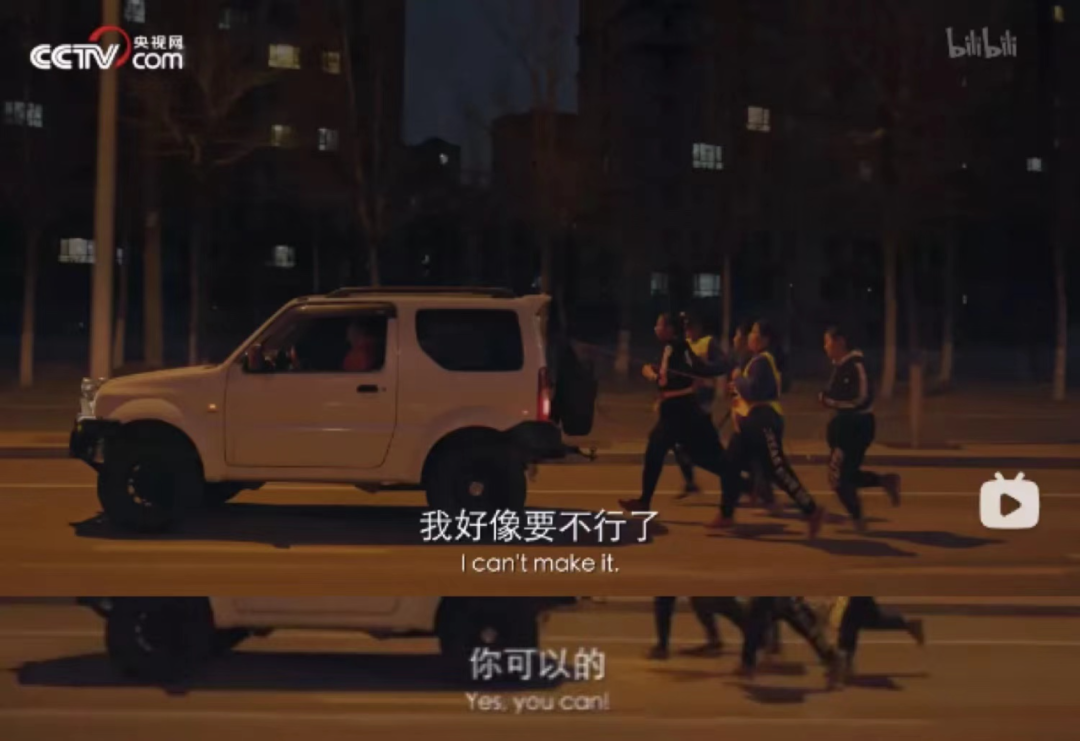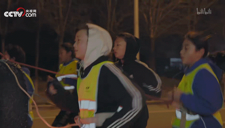 凌晨四点,辽宁鞍山,一群身穿反光背心的小孩腰上系着绳子,被“拖”在汽车后面匀速跑着。