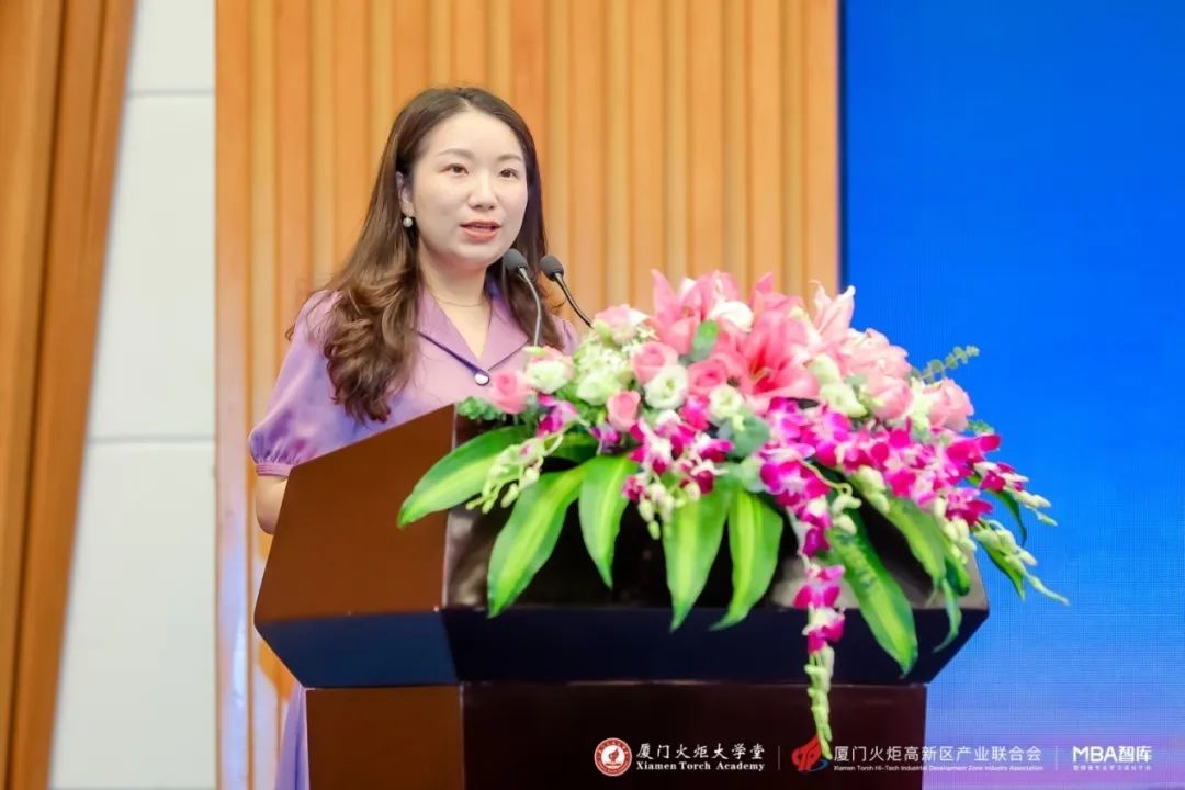 厦门火炬大学堂陈心怡表示火炬大学堂作为本次论坛的主办单位之一,是去年5月成立,它是全国高新区首个产业型的教育平台。厦门火炬大学堂校训是惟高惟新,向善向上,使命是服务高新企业,践行产教融合行动学习的理念,专注搭建政、产、学、研、用、金六位一体协同交流平台,赋能企业领军人才、产业专才和青年创新创业人才,培育国家科技战略人才力量努力建成现代化产业人才培养基地和高新产业新型智库,致力于推动厦门高新产业的高端化、数字化、绿色化和国际化。