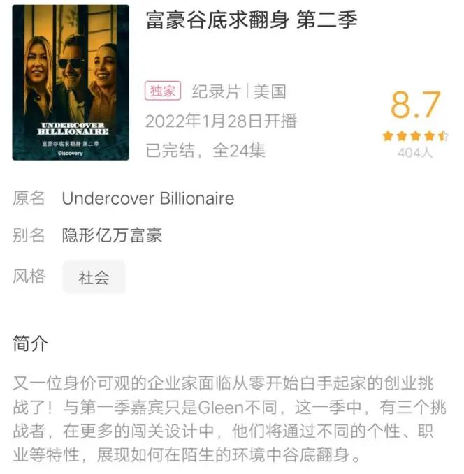 看完这部节目,我的体会是,所谓富豪谷底求翻身,真正的意义,不是那个创立百万企业估值的最终结果,而是纪录片通过三位主角的故事,教会我们要在人生的起伏中持续振作。