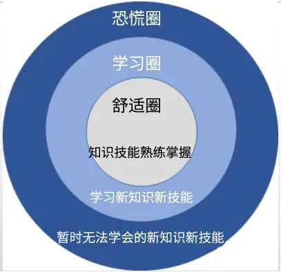 美国心理学家诺尔·迪奇曾提出行为改变三圈理论:舒适圈、学习圈、恐慌圈。