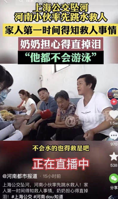 知道小周下水救人了,远在河南的家人担心得直掉泪。