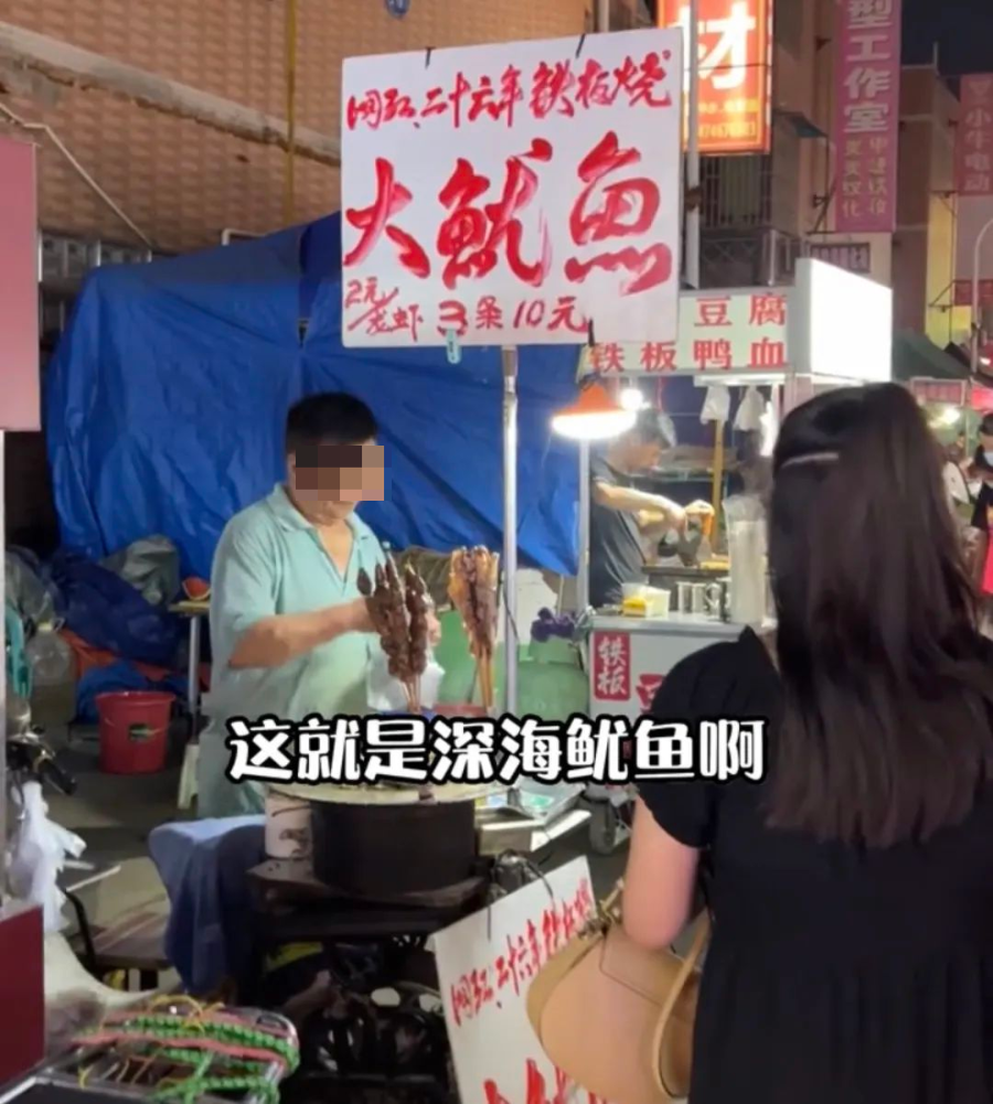 没走几步,不远处鱿鱼烧烤摊的摊主引起了她的注意。