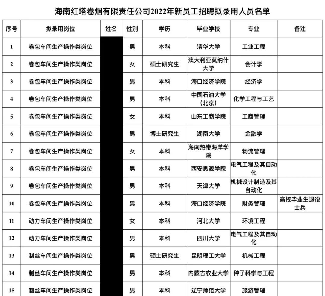 海南一家卷烟厂的生产操作类岗位,更是吸引了清华大学、澳大利亚莫纳什大学(全球排名57位)这样的名校本科生前来应聘。
