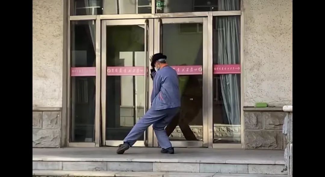 就像在医院门口拿出帽子,模仿迈克尔杰克逊跳出动感的太空漫步,活力十足的保洁爷爷;
