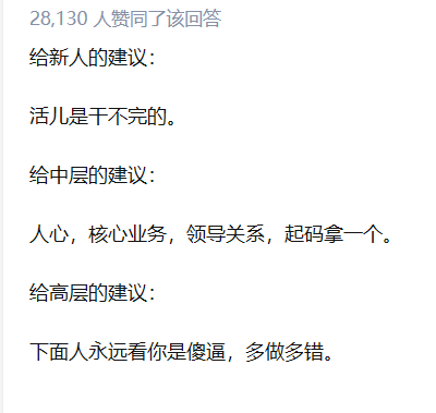 短短三句话,可谓是涵盖了职场层级最具代表性的三大潜规则。