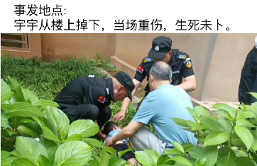同一时间,远在外地出差的小宇爸爸接到了物业电话,得知:小宇坠楼,生死未卜,已经被120急救中心抬上了救护车。