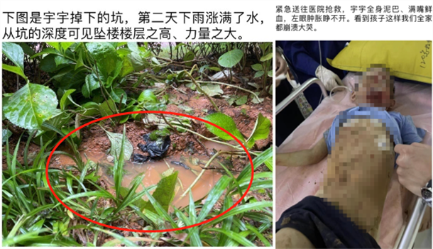 当天郴州下雨,小宇坠落的地面,被砸出了一个小坑。