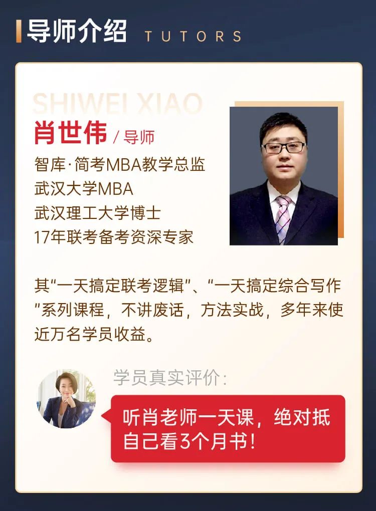 但就是这张“废纸”,决定了一个人的学识多少,决定了很多人踏入社会的门槛,决定了他们通往“罗马”的起点。一个拿了高学历的人,就算他去卖猪肉,都能闯出一片天。当年80年代的北大高材生陆步轩,毕业后卖猪肉,2003年国内媒体争相报道,引发全民热议。众人无不摇头叹息,说他浪费了好不容易拿到的学历,再仰天感慨了一番“读书何用论”。可现在回头看,让众人批判大材小用、自甘平庸的陆步轩,如今已成为企业家。2016年建立第一个面向大众消费者的互联网+猪肉的品牌,把猪肉卖出了北大的水平。当你还在感叹学历贬值的时候,持有高学历的人已经在降维打击了。没有底层认知体系的人,别人降维打击,他都来不及反应。如果你不想跨进一个行业就看见它的尽头,在别人降维打击的时候,无力还手当你在自己熟悉的领域爬到一定阶段,总会看到瓶颈,比如你做了10年财务,做到财务经理的职位想再晋升到CFO,就需要广泛涉猎企业战略、市场营销等方面的管理知识,这样才能让你的职业道路越走越宽。商业社会中,资源的价值是非常大的。行业资源和异业资源都是提升运行效率最有效的工具。这个年代不再是单打独斗的年代,唯有合作才能共赢。开阔自己的眼界,去探求新的机会是十分重要的,转换思考问题的方式和角度,比如用经营一家企业的角度去经营人生;或者取得交换机会,去学习和体验先进的运营和产品模式等等。而以上这些,你在MBA教育中就能够获得解答。MBA在思维方式、认知结构、个人素质和人脉资源方面搭建起一个比较完整框架,促使你去发现机遇,去解决问题、创造商机。MBA/EMBA的课程偏实战,更注重管理科学知识和商业实际案例的结合,避免纸上谈兵式的学习方式。而读MBA/EMBA的人是一群积极上进、锐意进取、不甘落后的人,MBA圈子精英汇聚、人才济济。无论任何时代,知识永远都是最重要,也是最廉价的跃迁方式。- 离开校园多年,再去做题一脸懵,备考MBA毫无头绪。