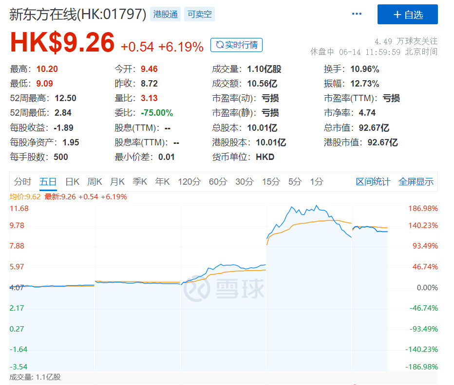 13日新东方在线股价盘中一度涨超100%,市值两天飙升60亿。