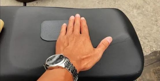 干活的第一天,他贴出去了将近100块皮革,把身上带去的皮革贴基本都用完了。