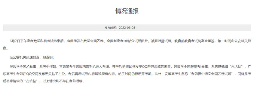 昨天清晨,教育部紧急发布情况通报。