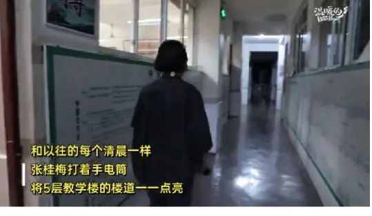 像往常一样,她一盏一盏地摁亮五层教学楼的灯。