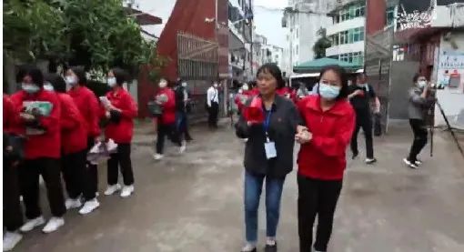 送考车到达考点,张桂梅再一一叮嘱学生们,检查好考试物品。