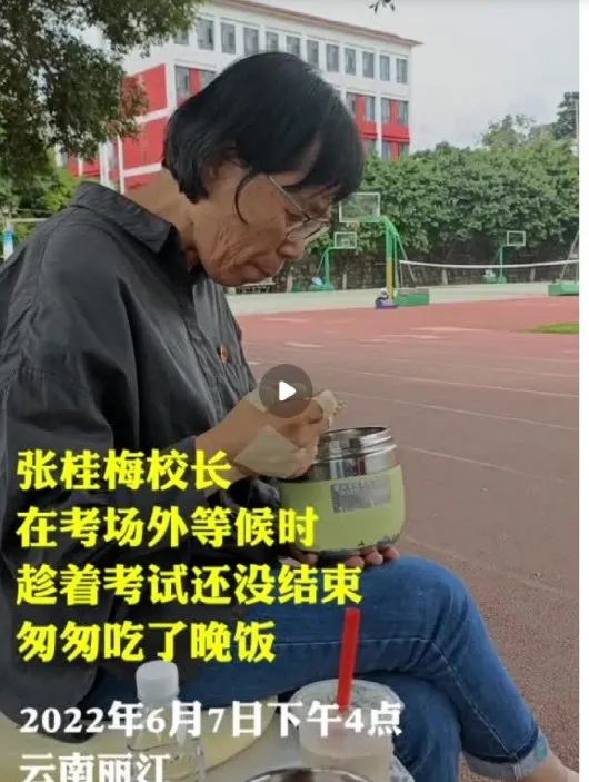 昨天下午,在学生高考的时候,趁考试还没结束,张桂梅匆匆把晚饭吃了。