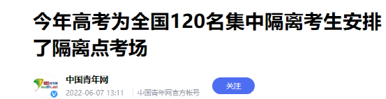 全国,共为120名集中隔离考生安排了隔离点考场。