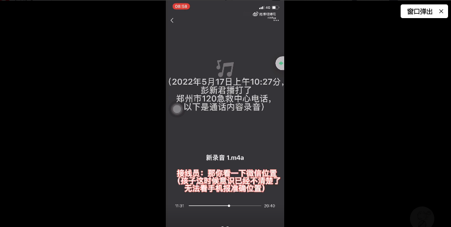 在对方接起电话那一刻,彭新君粗重的喘气声与艰难的吐字无时不在透露一个关键信息:这人有危险!