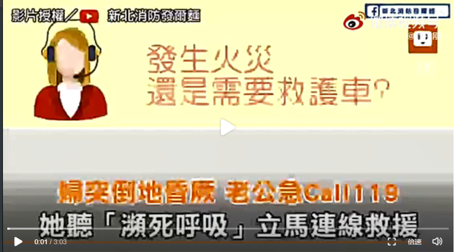 事发我国台湾新北市,一位先生拨打急救电话,表明他太太昏倒在地,需要救援。