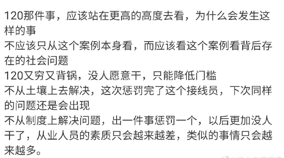 这桩悲剧的结尾,不是去“网暴“”一个接线员,而是要去从源头上提高120接线员的专业度。