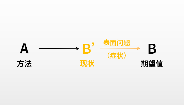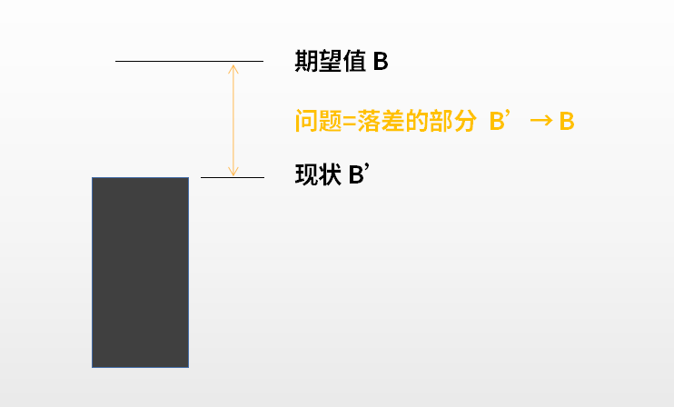 假设某件事的期望值是(B),现状是(B’),那么(B"→ B)这个落差部分,就是问题。